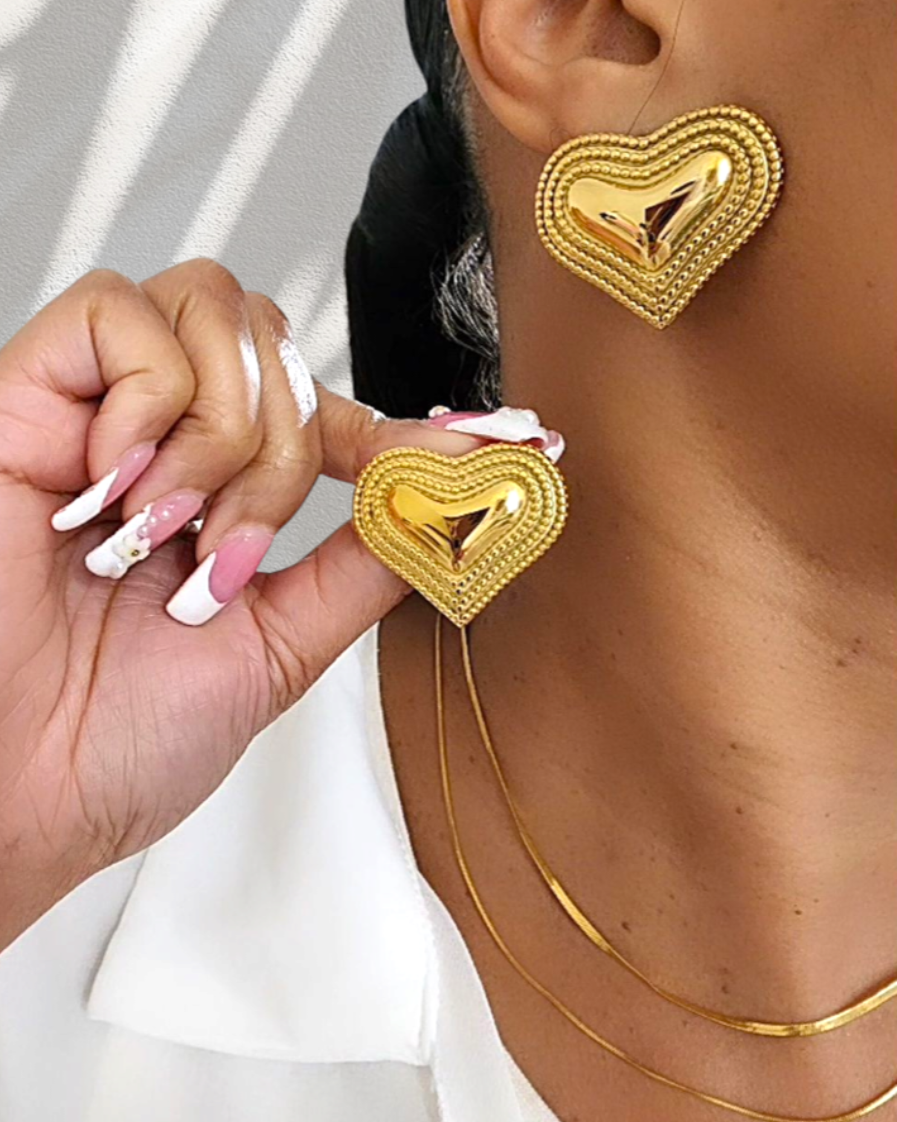 Your new lineup of high-quality, 18k gold-plated stainless steel jewelry that’s here to look stunning and stay that way! Why stainless steel? Here’s the scoop: stainless steel isn’t just about a beautiful look; it’s a game-changer in durability and longevity. Unlike other metals, stainless steel resists tarnishing, so each piece stays as bright and golden as the day you bought it – no dulling over time. Plus, it’s hypoallergenic and nickel-free, making it safe for even the most sensitive skin types. That means you can wear your Golden Hour rings and earrings every day without worrying about green skin or irritating reactions.